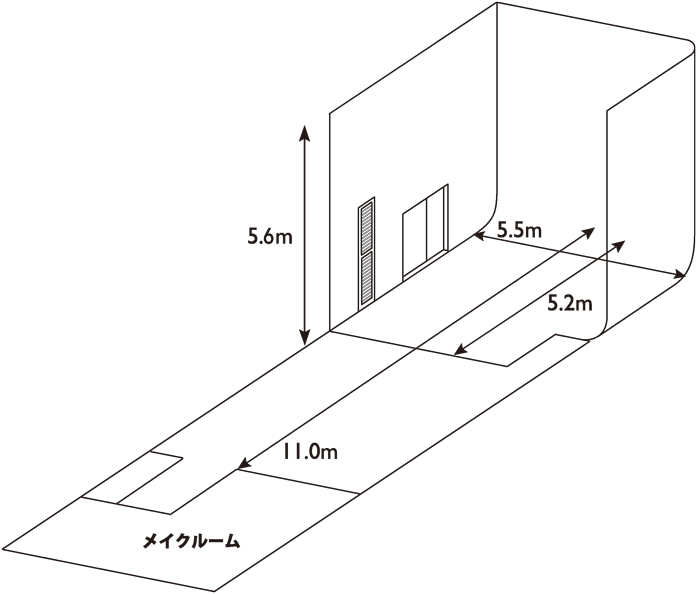 人物撮影から商品撮影まで、多目的に使用できる2面アールスタジオです。
