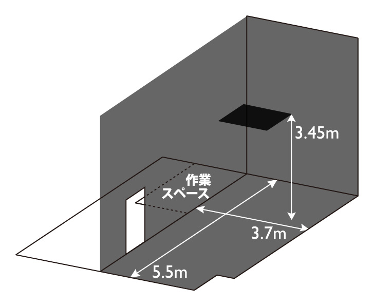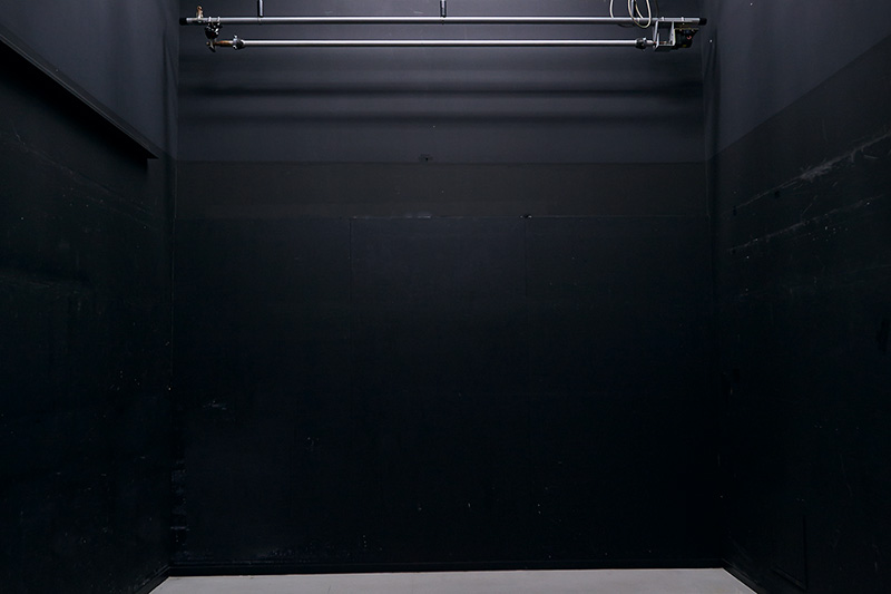 天井、壁面がブラック仕上げになっている物撮り用のスタジオです。人物撮影も可能ですが、バストアップまでを推奨します。
